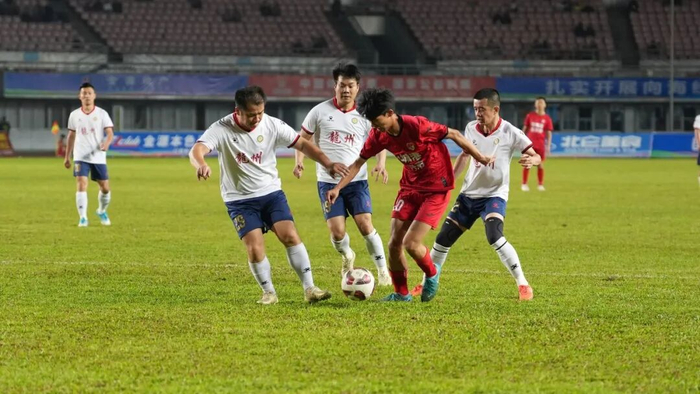 3月15日晚,“国控杯”2025—2026年广西县级足球超级联赛桂南赛区,防城港市东兴市队迎战崇左市龙州县队,以3∶0的比分赢得主场胜利。