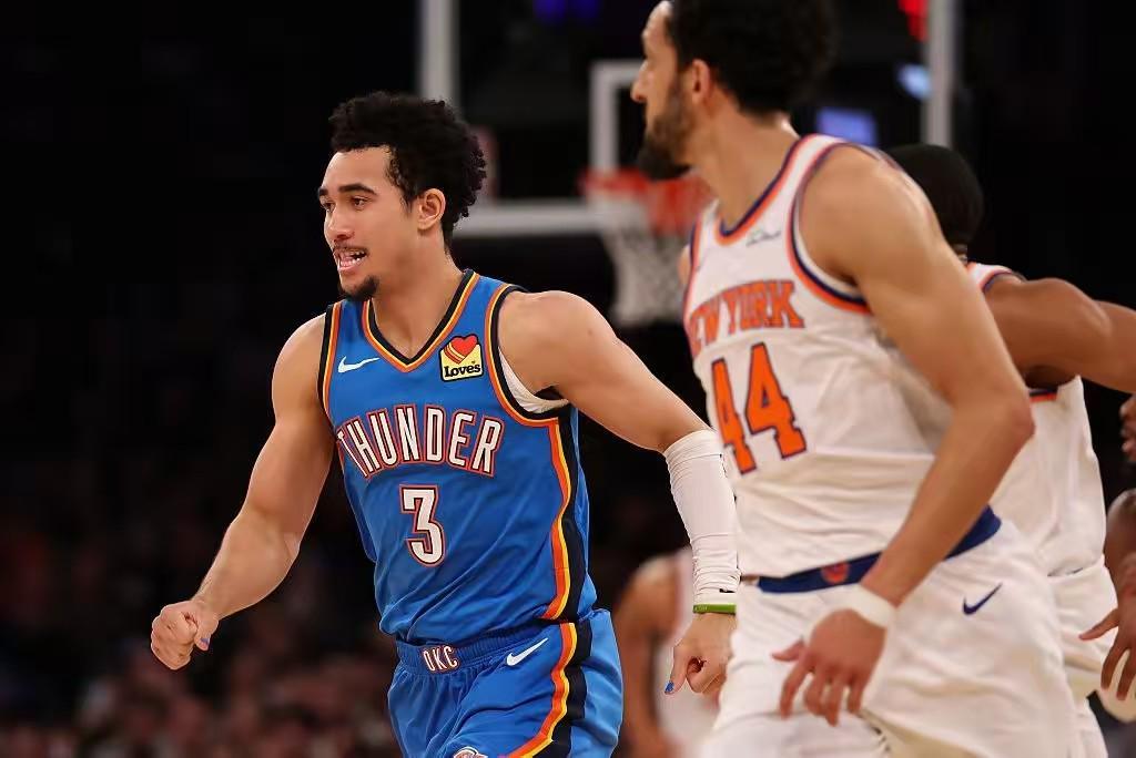 雷霆双子星本场表现很出彩,霍姆格伦制霸内线,砍下28分8篮板的数据,尤其是高炮台的属性,飙中6记3分,让尼克斯防不胜防,也是赢球的关键!