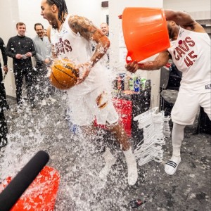 1月17日讯 NBA常规赛,骑士117-115险胜76人。赛后,骑士官推晒图,泰森得到了本场的比赛用球,当家球星米切尔则...